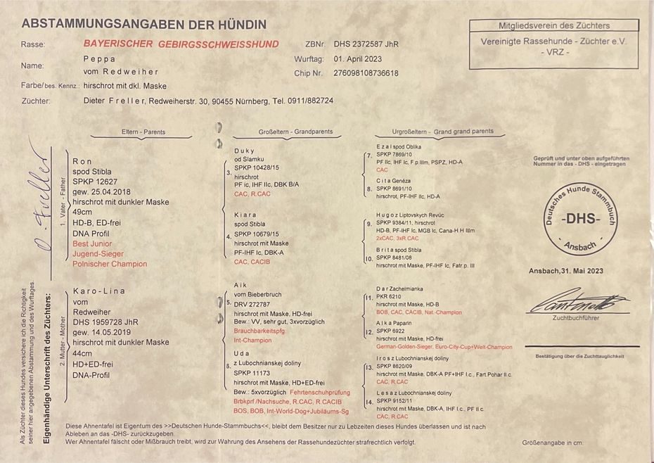 Bayrischer Gebirgsschweisshund 01.04.2023 Hündin